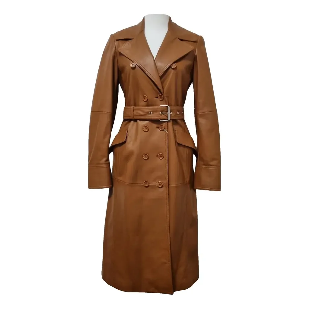 Una grande borsa in pelle marrone con manici corti e regolabili, marca Polène.